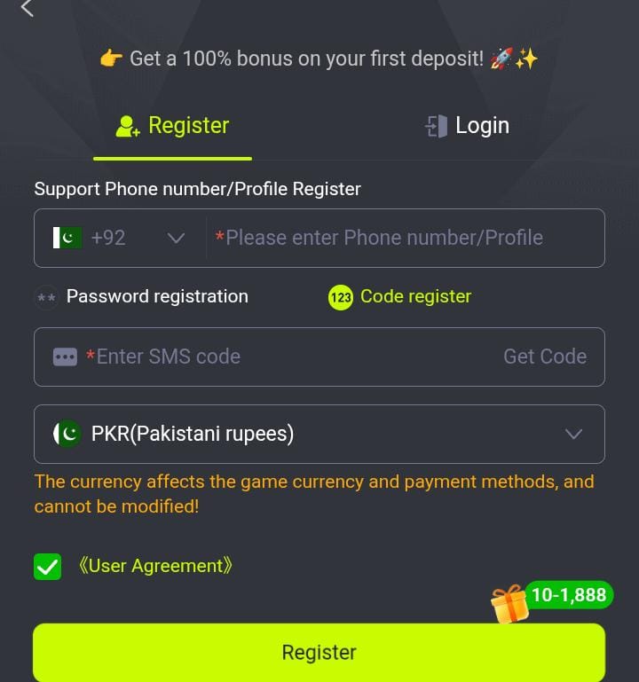 - Register with your mobile number, come up with a password and log in to begin playing.