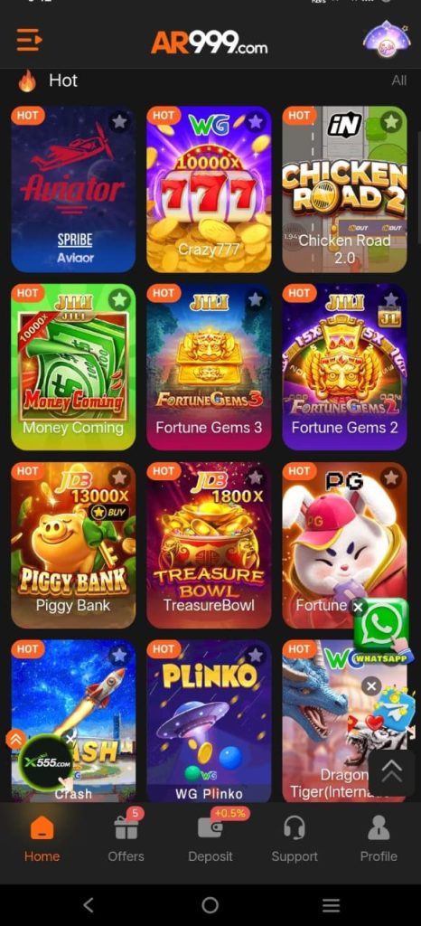 AR999 provides the optimal balance of excitement, security, and convenience whether you need to play to have fun or win real money. It is among the best in the online gaming game due to its easy installations, quick transactions and simple design.