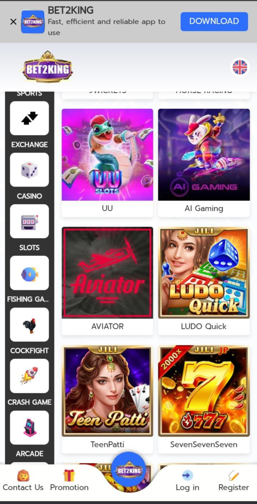 Bet2King has a lot of games that include slot games, color prediction, card games, and lottery-type games. Such diversity makes the game constantly new and exciting to all users.