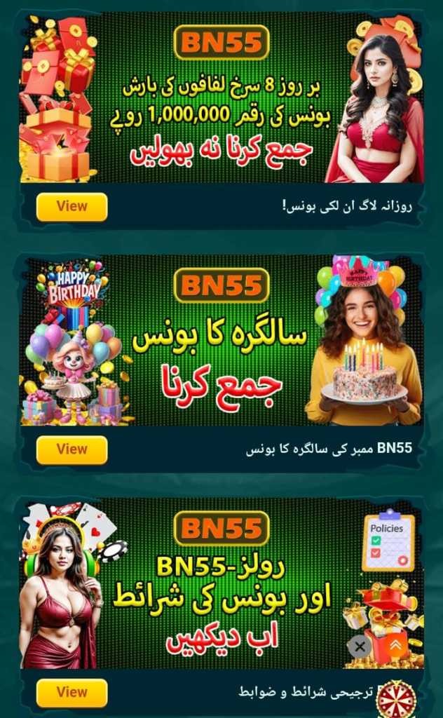 Bn55 game is among the best online games in pakistan.Gamer enjoy love, rewards and simplicity. It does not matter if you are new to online casino games or an experienced player, Bn55 app will definitely entertain and have a chance of making some money and player can also try this online game K6 Club.