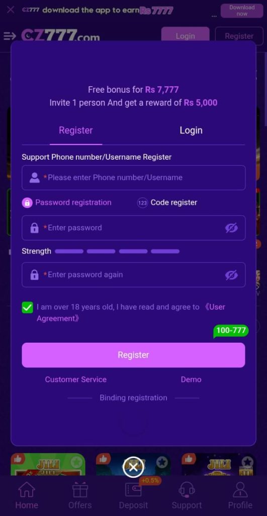 How to Deposit and Withdraw Cash From CZ777 Game App?