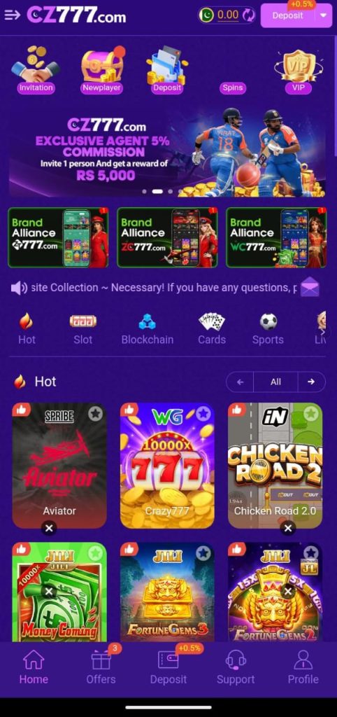The site has dozens of casino-type games, such as: Slot machines, Spin-and-win games, Card games (Teen Patti and Andar Bahar), Fish shooting games, Dice games, Live casino tables (Roulette, Baccarat,), Mini challenges and event-based games. The CZ777 game will always have something to offer regardless of whether you love fun, easy games or the competition of playing casino tables.
