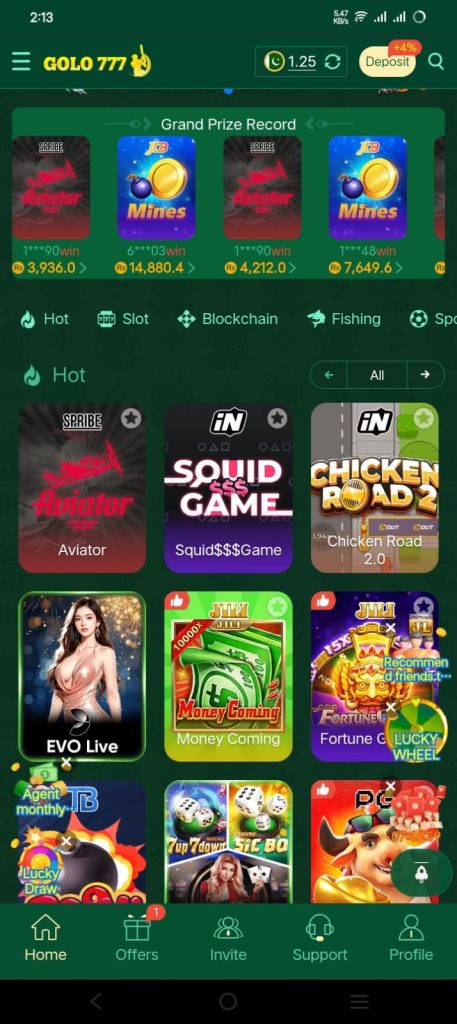 Golo 777 also has a massive array of casino games such as slots, baccarat, poker, blackjack, roulette, dragon tiger and others. No game has the same rules, themes and jackpot opportunities. The players are able to easily change between the games and find new favorites.
