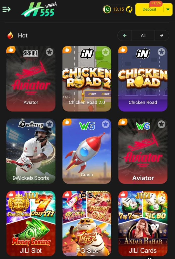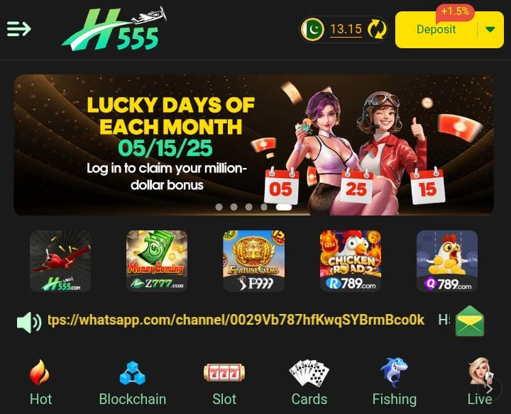 H555 Game, an online casino which has rapidly gained popularity with the players who like slot games, card games and live-real money casino experience. H555 will provide entertainment and earning opportunities with a smooth interface and exciting rewards. The game is unique in that it is concerned with simplicity. The new players who have never operated a casino application can learn how the app operates in a few minutes. With free spins bonuses, as well as real money payouts, the app is meant to keep the players occupied without complicating the matter. Download the Rs177 game.