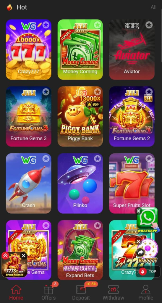 The game is a large assortment of games with various types of casino games that target every kind of player. Players can have the unlimited fun in a single application, starting with the traditional slot games and recent fishing games, card games, and live casino. This diversity will make the game a powerful option among those who enjoy having fun and playing real money without the need to change platforms.