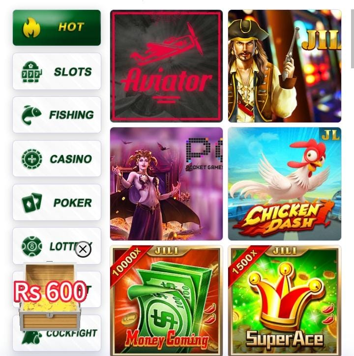 Slot games,Card games,Color prediction games,Lucky spins and jackpot games.