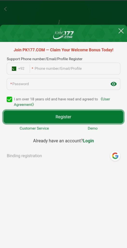 - Register in PK177, create account and begin playing.