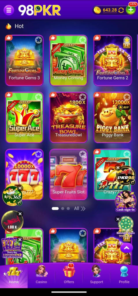 PKR98 has it all, including easy deposits and withdrawals, free spins, and bonuses, among other things that a player may desire. Its interface is appealing to all people regardless of their level of experience and expertise in playing. The level of safety and satisfaction of the players used in the app will also make you have every moment without any concern.