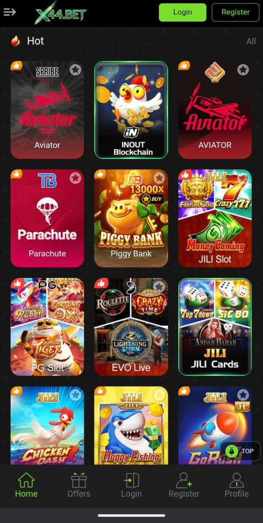 X44 Bet app provides a great selection of best casino games, such as Slots games, Color prediction games Card games, and Lucky draw games, Daily challenge games.The selection will keep the players entertained and will offer higher winning opportunities.